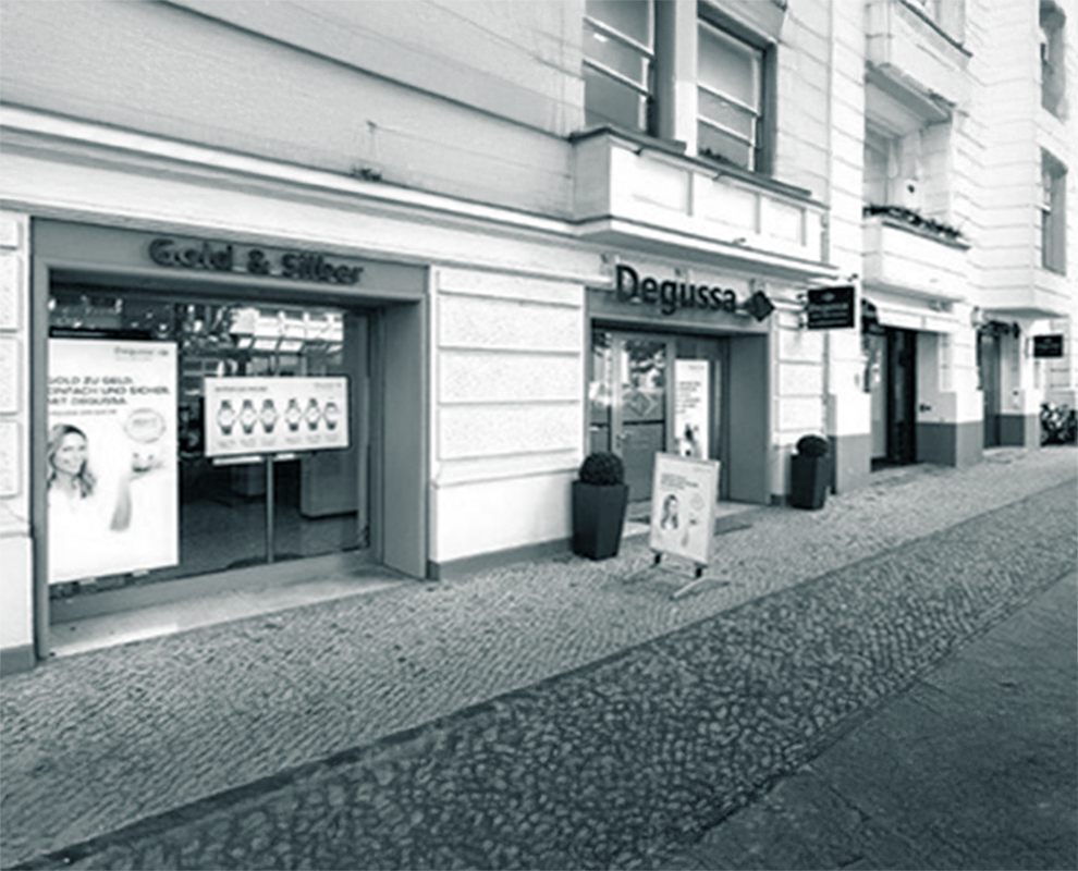 In der Fasanenstraße 69 eröffnete Degussa ein Ankaufszentrum mit ausgebildeten Goldschmieden und modernsten Prüfgeräten.